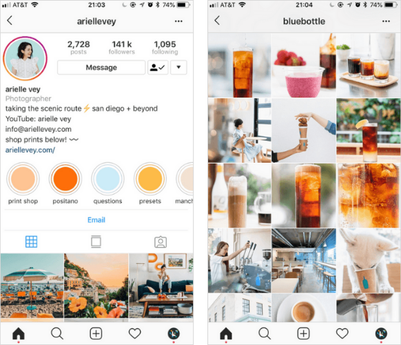 Again, new visitors on your profile are much more likely to convert into followers when they know exactly what they can expect from your feed, and your Instagram Stories.