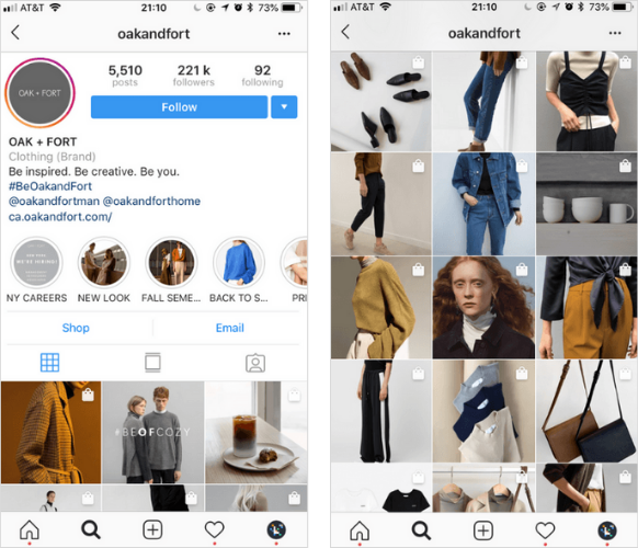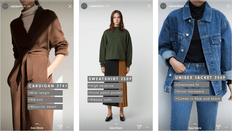 You might notice brands and businesses like @oakandfort, taking the design and style of their website (like logo, font, color palette, and tone) and applying it to their Instagram Stories design.