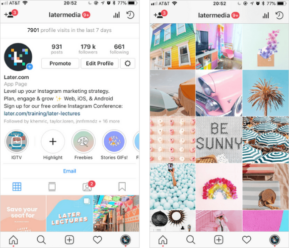 The best way to pre-plan your feed and make sure everything's flowing together is by using a visual planner like Later.